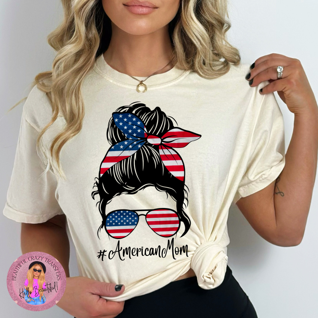 American Mom Messy Bun DTF Transfer
